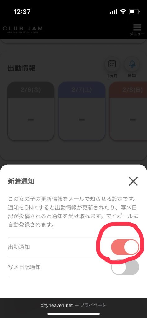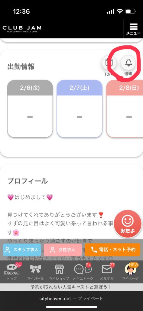 そこで強くおすすめしたいのが、シティヘブン公式の「出勤通知」機能です。